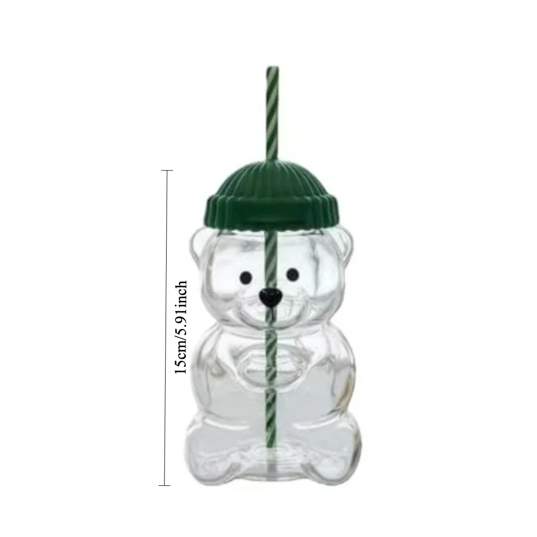 2025 New 500ML Cartoon Bear Shaped Coffee Mug Cute Bear Mug Glass Cup With Straw Transparent Creative Milk Coffee Water Cups