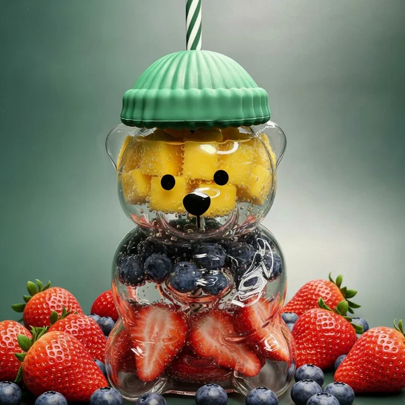 2026 New On Sale Bear Shape Plastic Or Glass Cup With Straw Coffee Mug Cute Cartoon Creative Glass Juice Cup Tea Cup Drinkware